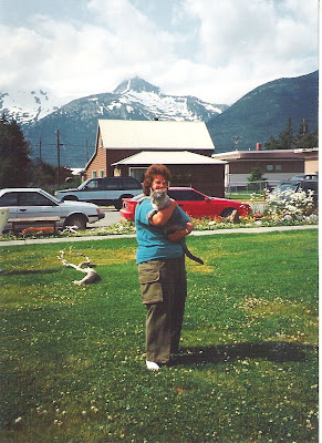These two beauties were the masters of the Skagway Home Hostel in Alaska. The white one was BK, the tabby was apparently called Bugger, at least that's what the scrawl on the back of the photo seems to say. What was I thinking with that perm!
